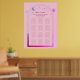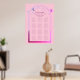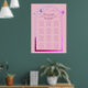 Estrellas celestes de la luna color rosa morado del sol morado místico cuadro de asientos Bodas Bodas de Poster de Rótulo Las impresiones presentan un sol rosa y morado, luna y estrellas enmarcadas en un fondo rosado. Dentro del marco se encuentra el texto "Bienvenidos" en un guión elegante de caligrafía rosa y la información de la tabla de asientos de la recepción de bodas. Diseñado para usted por ©2022 Evco Studio www.zazzle.com/store/evcostudio