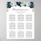 Cuadro de asientos boda, Un bonito diseño con flores de color azul marino y azul claro, El texto y los colores de este poster boda se pueden editar.