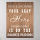 "Puedes encontrar tu asiento aquí, pero tu lugar está en la pista de baile", un divertido cartel de la recepción de bodas. El fondo de grano de madera es ideal para los bodas rústicos, rústicos y de granero, pero en nuestra tienda se puede encontrar la misma señal en blanco y negro.
