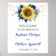 Este cartel boda presenta un diseño de acuarela con girasoles, rosas azules, follaje y luces de cuerda. Personalízalo con tu propio texto. Este producto forma parte de una colección de suites bodas que incluye productos a juego. Visite nuestra tienda o vea la página de la colección para ver el rango completo.