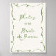 Quirosas y extravagantes "Fotos de la novia y el novio", poster que presenta un marco escrupulosamente dibujado a mano, acompañado de un tipo de letra informal y manuscrita que capta perfectamente la emoción y la alegría de la ocasión. El poster viene en un esquema de color neutro de verde y crudo.