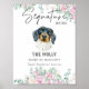 El encantador letrero de la bebida Dachshund es un mascota floral con un estilo acuático perfecto para un boda saturado de tonos neutros. Es una forma atractiva de acentuar el cóctel, la comida o la mesa de postres. Personalice el cartel de la barra del boda con el nombre del mascota y los detalles de la bebida.