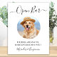 ¡Bar abierto! Caligrafía simple pero elegante, este letrero de barra de boda presenta bar abierto en caligrafía elegante, y las bebidas corren por nuestra cuenta, la resaca corre por tu cuenta. ¡Personalice este elegante letrero de boda con la foto de su mascota favorita, la foto de su perro, la foto de compromiso o pareja, y nombres! DERECHOS DE AUTOR © 2020 Judy Burrows, Black Dog Art - Todos los derechos reservados. Póster de Boda de Perro de Mascota Bar Abierto Foto Personalizada Bebidas a Cargo Nuestro
