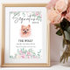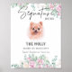El encantador cartel de la firma de perro de Pomerania presenta un hermoso diseño de mascota floral al estilo de las acuarelas, perfecto para un boda saturado de tonos neutros. Es una forma atractiva de acentuar el cóctel, la comida o la mesa de postres. Personalice el cartel de la barra del boda con el nombre del mascota y los detalles de la bebida.