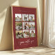 Impresión de arte para pared de fotos de boda con temática de Minimal Dark Red para el 1er aniversario. Personaliza esta moderna impresión de arte para pared con temática de boda de color rojo oscuro/burdeos con nueve de tus fotos de boda favoritas o fotos generales de pareja, y añade tus nombres y la fecha de la boda, u otra fecha especial arriba. Cuenta con la leyenda "1 año contigo, toda la eternidad por delante" en hermosa letra cursiva y tipografía serif moderna. Este artículo es un regalo perfecto para el aniversario de boda, o un recuerdo para tu novio o novia.