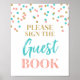 Por favor, firme nuestro poster de señas bodas de libro de invitados con un diseño azul turquesa verde azulado, rosa coral y confetti dorado con letras a mano. Perfecto para bodas, duchas para bebés, duchas de novias, aniversarios, cumpleaños y más.