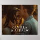 Un tipo de superposición moderno con nombres grandes y una foto de sangrado total son las características de este letrero de boda.