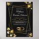 ✨ Elegante ✨ de Invitación a la Boda Negra y Dorada - Una 💍 plantilla de invitación a la boda de lujo con un sofisticado 🖤 de fondo negro con acentos florales de oro 🌟, marcos geométricos y elegantes fuentes de escritura ✒️. El diseño incluye espacio para los nombres de la pareja 👰 🤵, fecha de boda 📅, 📍 de ubicación y ✉️ detalles de RSVP, todo personalizable para adaptarse a su día especial 💕. Perfecto para una 🎉 moderna, glamurosa o formal de tema boda, esta elegante invitación a la boda está diseñada para impresionar a sus invitados y marcar el tono para su 🥂 de celebración.