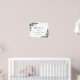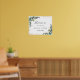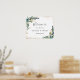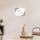 Bienvenidos a una elegante boda. Un fondo blanco moda. Decorada con hojas de eucalipto de color verde acuático, escarabajos, vegetación, hojas de oro falsas y manchas de purpurina dorada. Personalice y añada los nombres de la novia y del novio y una fecha. Letras negras y doradas.