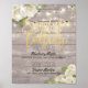 Boda del menú de bebidas de la firma Plantillas de Poster de decoración - Elegante guión de Relieve metalizado dorado falso con luces de flores y cuerdas de rosas blancas sobre fondo rústico de madera. ¡Un Diseño Perfecto Para Tu Gran Día! Todos Los Estilo De Texto, Los Colores Y Los Tamaños Se Pueden Modificar Para Ajustarse A Sus Necesidades.