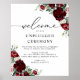 Diseñado para coordinar con nuestra colección de bodas de Blooms Rústicos, esta plantilla de señalización de la ceremonia de personalizable desenchufada incluye flores de color burdeos y rojo con hojas de vegetación y ha sido emparejada con una caligrafía elegante y un tipo de letra serif elegante en negro. Para realizar cambios avanzados, seleccione la opción "Editar usando la herramienta de diseño" en Personalizar esta plantilla.