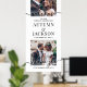 Los huéspedes bodas reciben su ceremonia o recepción con una elegante foto personalizado de un gran poster vertical. Las imágenes y el texto de esta plantilla de señas descargables son fáciles de personalizar (IMAGE PLACEMENT TIP: Una forma fácil de posicionar una foto exactamente como se desea es recortarla antes de subirla al sitio web de Zazzle). El moderno diseño minimalista en blanco y negro incluye dos imágenes de su elección, caligrafía de guion de estilo manuscrito de moda, tipografía vintage elegante y mensajes de personalizable que dicen "bienvenidos a nuestra celebración boda" y "gracias por compartir nuestra alegría". Este poster imprimible es una forma elegante de compartir imágenes de compromiso y añadir un toque personalizado a su decoración especial del día. ¡Felicitaciones a la novia y al novio!