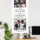 Los huéspedes bodas reciben su ceremonia o recepción con una elegante foto personalizado de un gran poster vertical. Las imágenes y el texto de esta plantilla de señas descargables son fáciles de personalizar (IMAGE PLACEMENT TIP: Una forma fácil de posicionar una foto exactamente como se desea es recortarla antes de subirla al sitio web de Zazzle). El elegante diseño en blanco y negro tiene un ambiente retro de moda con letras blancas de estilo Art Déco de época, con dos imágenes de tu elección. También incluye tipografía moderna y clásica de máquina de escribir minimalista y mensajes de personalizable que dicen "bienvenidos a nuestra celebración boda" y "gracias por compartir nuestra alegría". Este poster imprimible es una forma elegante de compartir imágenes de compromiso y añadir un toque personalizado a su decoración especial del día. ¡Felicitaciones a la novia y al novio!