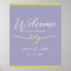 Saluda a tus invitados con una elegante vibración utilizando esta moderna señal de bienvenida de boda en suave púrpura y verde brillante. Un diseño minimalista presenta un mensaje de bienvenida elegante y un motivo de corazón de cuerda dorada, un símbolo eterno de unidad y amor duradero. Con tipografía limpia y bloqueo de colores frescos, esta señal combina sofisticación con energía alegre. Ideal para bodas de verano o primavera, especialmente celebraciones al aire libre o con temática moderna. Personaliza con nombres y fecha para crear una primera impresión impresionante en la entrada de tu lugar de celebración.