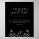 La elegancia eterna se une al minimalismo moderno en nuestro Rótulo de fotografía de Boda floral negro y moderno. Trae una sofisticación sin esfuerzo a tu gran día con este impresionante signo boda. Su estética clásica se combina a la perfección con la decoración, mientras que el libro de fotos integrado permite a los clientes dejar sus buenos deseos en un conservador muy bien seleccionado. Muéstralo orgullosamente como un punto focal de la moda que cautivará a tus seres queridos. Para la pareja que anhela un acento boda que exude elegancia atemporal con un toque moderno, nuestro Rótulo de Boda Floral Simple Black Modern Photo Guest Book es la elección perfecta. Su minimalista diseño y su versátil funcionalidad elevarán su celebración y proporcionarán un apreciado recuerdo a los que apreciar en los próximos años.