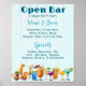 Póster Boda Open Bar Cocktails List Blue Wood
