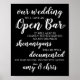 Póster Boda Open Bar Funny Rótulo Borracho Shenanigans