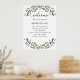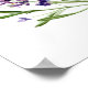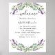 Marco blanco y elegante, decorado con flores de lavanda, flores y vegetación eucaliptica. Personalice y agregue sus nombres y la cronología del día de la boda.