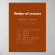 Orden de los eventos: orden boda del signo del día. Un tema de moda retro: adopta este diseño tipográfico vintage y elegante para tu papelería Boda, con un tema de color naranja quemado. Fácil de mezclar y emparejar con nuestra papelería similar disponible en color rosa melocotón, terracota y azúcar marrón. Personalizable completamente los colores y fondos de texto.