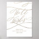 Este romántico boda de caligrafía dorada desea poster es perfecto para un simple boda. El moderno diseño clásico presenta vistosos remolinos y florituras con magnífica y elegante tipografía de oro con imitación de champagne a mano. Nota: Este diseño no tiene Relieve metalizado oro real. Es un gráfico de alta calidad hecho para parecer un Relieve metalizado dorado.