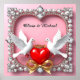 Un marco romántico con dos palomas blancas, un glamoroso corazón lleno de diamantes, un corazón rojo y anillos de bodas, que simbolizan el amor, el romance y el matrimonio. Perfecto para elegantes temas de boda o propuesta.