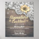 Boda de la carta de bebidas de la firma Plantillas de Poster de decoración - Encaje de época, girasol y cadenas sobre fondo de madera rústica. ¡Un Diseño Perfecto Para Tu Gran Día! Todos Los Estilo De Texto, Los Colores Y Los Tamaños Se Pueden Modificar Para Ajustarse A Sus Necesidades.
