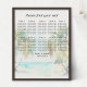 Este elegante y hermoso cuadro de boda acuático cuenta con una playa, un cielo azul y palmeras. El texto combina guiones manuscritos y sans serif para un estilo elegante y moderno. Es perfecto para una boda de verano o destino tropical.