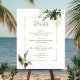Este bar boda bebe el cartel del menú con un pintoresco follaje tropical de color agua verde, monstera, hojas de palmera, hojas de plátano y falsas hojas de oro con un falso marco rectangular de oro. Es perfecto para una boda tropical, de playa o de destino.