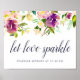 Diseñado para concordar con nuestra colección de bodas Vibrant Bloom, este elegante cartel floral acuático invita a los huéspedes bodas a celebrar a la pareja feliz con un centinela brillante. Personalice con dos líneas de texto personalizado en escritura caligráfica y letras serif tradicionales (mostrada con "Let Love Sparkle: sparkler sendoff at [time]").