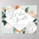 Diseñado para concordar con nuestra colección de bodas Boho Blooms, este elegante cartel botánico invita a los bodas a celebrar a la pareja feliz con un gorro brillante. "Let Love Sparkle" aparece con su texto personalizado; mostrado con "sparkler sendoff at [time]", enmarcado por un borde geométrico de flores de color agua pastel y follaje botánico en tonos tierra inspirados en el desierto, en tonos melocotón, verde salvia, blanco y marfil.