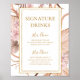 Esta señal de bebidas con firma botánica tropical boho es perfecta para su elegante recepción de boda rústica floral, verde, melocotón y dorado rosa. El diseño presenta un marco dorado o ramo con hierba de pampas rosa moderna, simple salvia, marfil, hoja de palma de champán y follaje de playa clásico. Las flores pueden incluir rosa y orquídea. El diseño es ideal para una boda de terracota vintage clásica, beige, óxido, invierno, primavera u otoño. Por favor, busque otros artículos de papelería de boda que coincidan o coordinen en el resto de la colección.