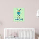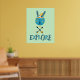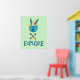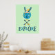 Cute cara de conejito azul Boho con flechas cruzadas y texto decorado con "Explorar" sobre fondo verde pastel