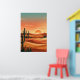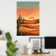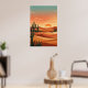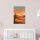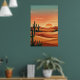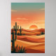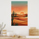 Póster Boho Desert Sunset Dunes with Cactus & Flying Bird