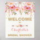 Precioso letrero de bienvenida de fiesta de despedida con temática bohemio que presenta un atrapasueños floral de acuarela femenina en rosa y dorado