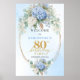 Póster Boho Hydrangeas Gold Dusty Blue 80 birthday welcom