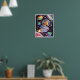 Póster Boho Illustration Girafe naviguant dans l'Espace