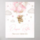 Póster Boho Pink Bear Balloon Baby Shower Diaper Raffle