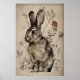 Póster Boho Rabbit Bunny Flower Print, Rustic Hare