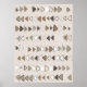 Un patrón geométrico de boho de filas opuestas de triángulos vagamente rellenos y delineados en una paleta marrón, tapo y marfil.