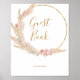 Este boho tropical botánico | el letrero de su libro de visitas es perfecto para su elegante boda rústico floral, verde, melocotón y oro rosa. El diseño presenta un marco dorado o un ramo con pasto rosa de pampas moderno, salvia simple, marfil, hojas de palmera de champán y vegetación clásica de la playa. Las flores pueden incluir rosa rosado y orquídea. El diseño es ideal para una elegante terracota vintage, beige, roya, invierno, primavera, boda otoño. Encontrará otro material de boda que coincida o coordine en el resto de la colección.