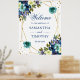Póster Boho Watercolor Winter Flowers Gold Frame Boda