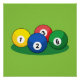 Ilustracion de un billar amarillo, rojo, azul y verde, piscina, bolas de billar. Este juego cubierto de mesa verde es una buena conexión y relajación para los amigos y la reunión familiar. Este sencillo diseño es una idea de regalo para los amantes de las ocho pelotas y los amantes del deporte de cue.