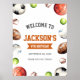 Añade un toque de encanto a tu fiesta de cumpleaños con nuestro poster de bienvenida con la temática Sports Balls. Diseñado para deleitar a sus huéspedes y hacer que su fiesta de cumpleaños sea inolvidable.