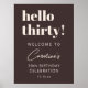 This personalized birthday welcome sign features bold, modern typography in a rich brown tone with ivory cream lettering for a stylish milestone celebration. Customize the name, age, and date to match your event details. Available as a printed poster or a digital download, making it easy to display at an entry table, party space, or venue entrance. A polished option for 30th birthday celebrations with a modern, minimalist feel.