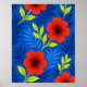 Póster Bold Vermilion Red Florals with Elegant Leaves