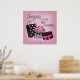Bolsas de compras y sombrerería y fondo lila con cita graciosa.