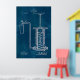 Un diagrama original de un invento de la Bomba de Cerveza patentado en 1878 diseñado para el arte de la pared sobre un fondo de plano.