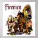 Gran regalo para el Fireman que conoces. Un caballo vintage tiró un motor de bomberos corriendo hacia un incendio con un joven corriendo al lado.