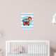Este diseño presenta un bombero lindo de cabello marrón en su camión de bomberos, saludando. Rojo, azul, amarillo y turquesa con franjas anchas.