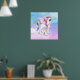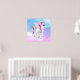 Poster con la imagen de un unicornio con grandes ojos azules, alas rosadas y una forma y cola arcoiris. Kawaii lindo.